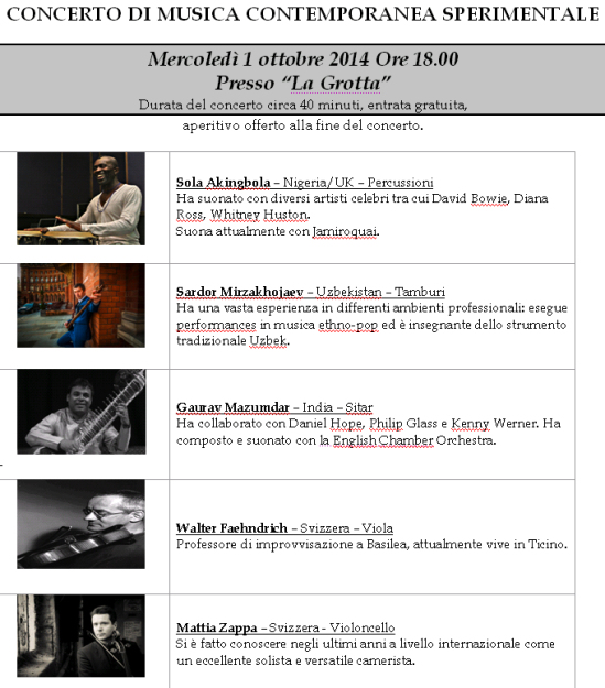 Concerto di Musica Contemporanea Sperimentale, Ascona.